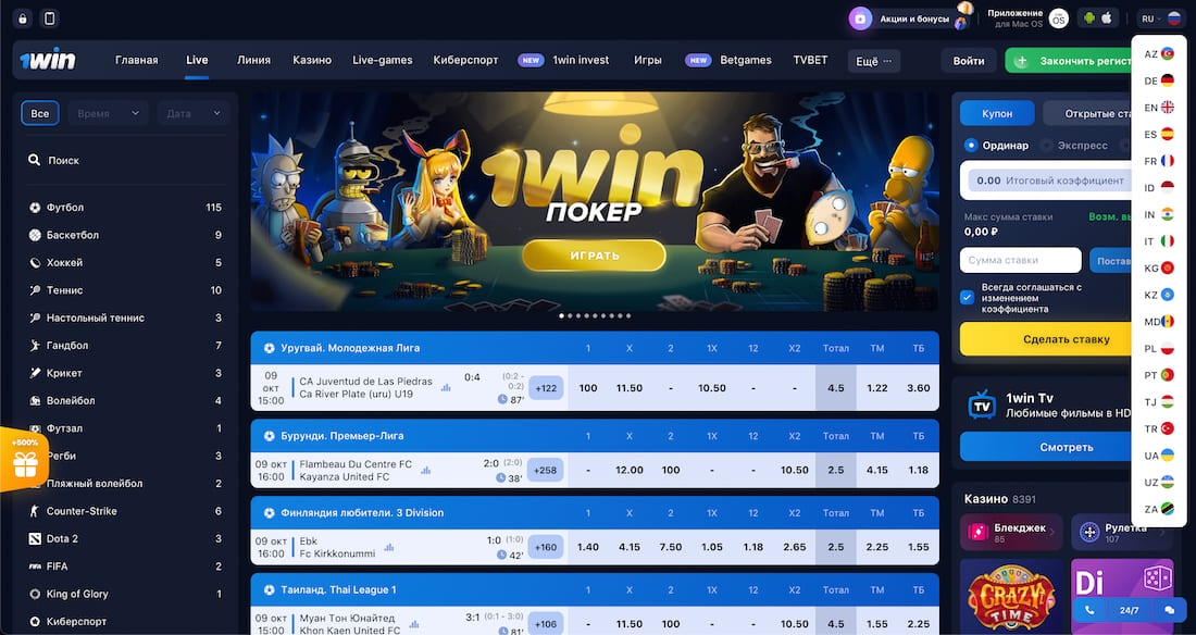 Онлайн-казино 1Вин проводит регулярные турниры. Призовой фонд соревнований может достигать 3 000 000$. Официальный сайт имеет удобную навигацию. Вверху страницы публикуется информация о джекпотах, актуальных акциях. Игроки могут перевести сайт на русский, английский и другие языки (более 20 вариантов).
